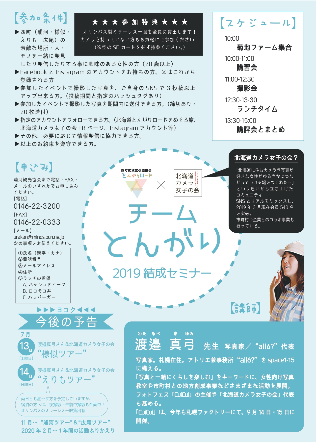 【募集終了】北海道カメラ女子の会 チームとんがり2019結成セミナー